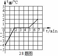 28.(1)如图 (2)晶体;冰有一定的熔点 (3)内能;水的比热容是冰的2倍(每空1分,图象2分)