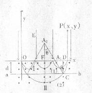 (1)若粒子没能进入磁场区Ⅱ而最后能通过坐标原点O,则粒子每次进入磁场区I中运动都是转动半周后就离开磁场进入电场,重复运动直到通过坐标原点0,粒子的一种运动轨迹如图中(1)所示,有n・2R1=x ④3分 R1≤d ⑤1分