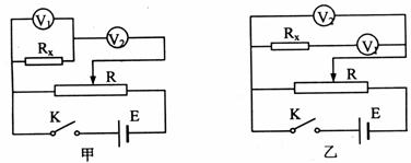 ②对甲图,Rx=U1r1r2/(U2r1-U1r2)(或对乙图,Rx=(U2-U1)r1/U1) (4分)