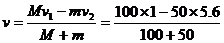 律得Mv1-mv2=(M+m)v (1分)