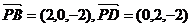则A(0,0,0)、D(0,2,0)、P(0,0,2).