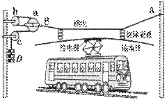 4. 电气化铁路的输电线常用图示的方式悬挂在钢缆上。钢缆的A端固定在电杆上,B端连接在滑轮组上。配重D是多个混凝土圆盘悬挂在一起组成,配重的总重为G。若不计摩擦和滑轮的重量,则以下说法中正确的是