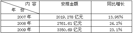 | 我国近三年中央财政安排就业和社保支出情况如下: