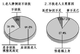 | 扶起跌倒老人,本是一件天经地义的事,但今年却成为了舆论关注的焦点。某高校就此开展了民意调查,下图调查显示的信息说明 |