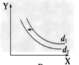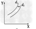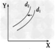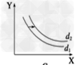 | 2011年一季度我国CPI指数的平均数值高达5%。CPI指数走高表明民众的日常生活支出增加,影响到居民对各种商品和服务的消费量。在居民收入不变的情况下,下列曲线图(横轴X为商品和服务的消费量,纵轴Y为居民收入水平,d1为CPI上涨前的消费曲线,d2为CPI上涨后的消费曲线),能正确反映这一信息的是 |